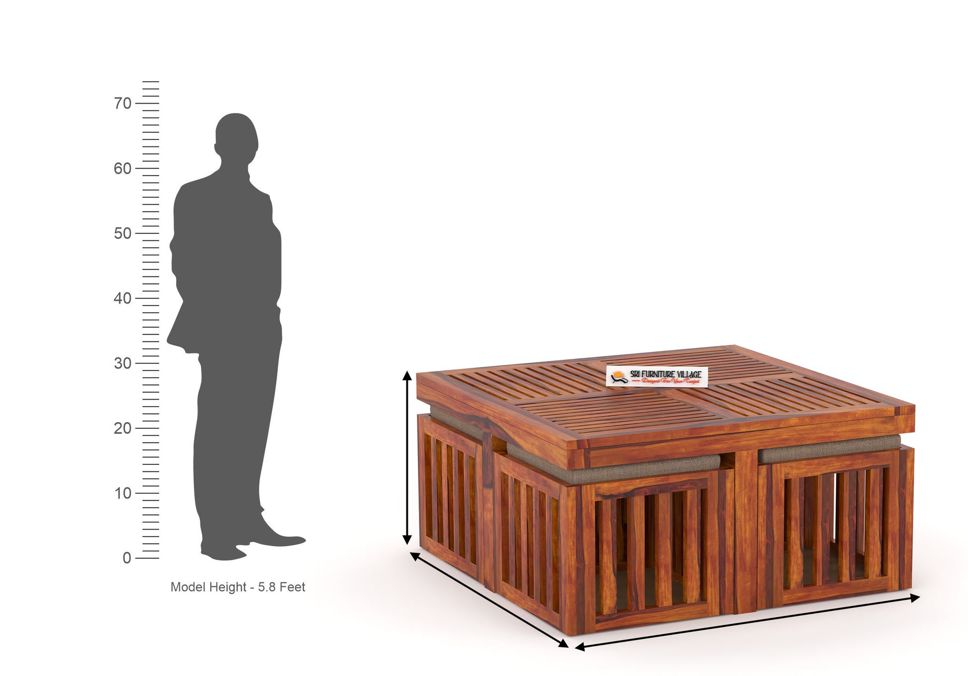 ZenFour Center Table with 4 stools - (Stone Finish) - 7078